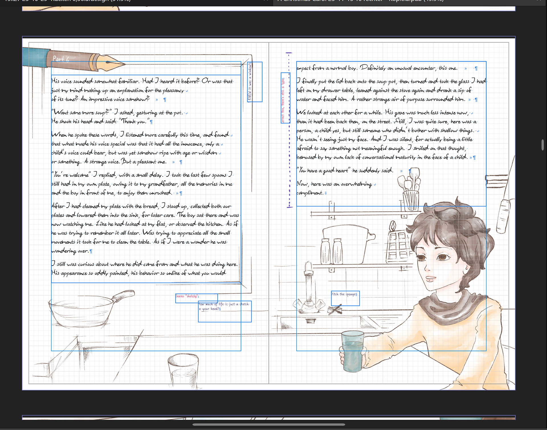 A Christmas Carol of A Sort is an illustrated book project with a strong focus on atmosphere, meta-narrative layers, and the close integration of text and image. The project is aimed at an adolescent to adult audience that reads with a childlike sense of wonder, curiosity, and emotional openness.