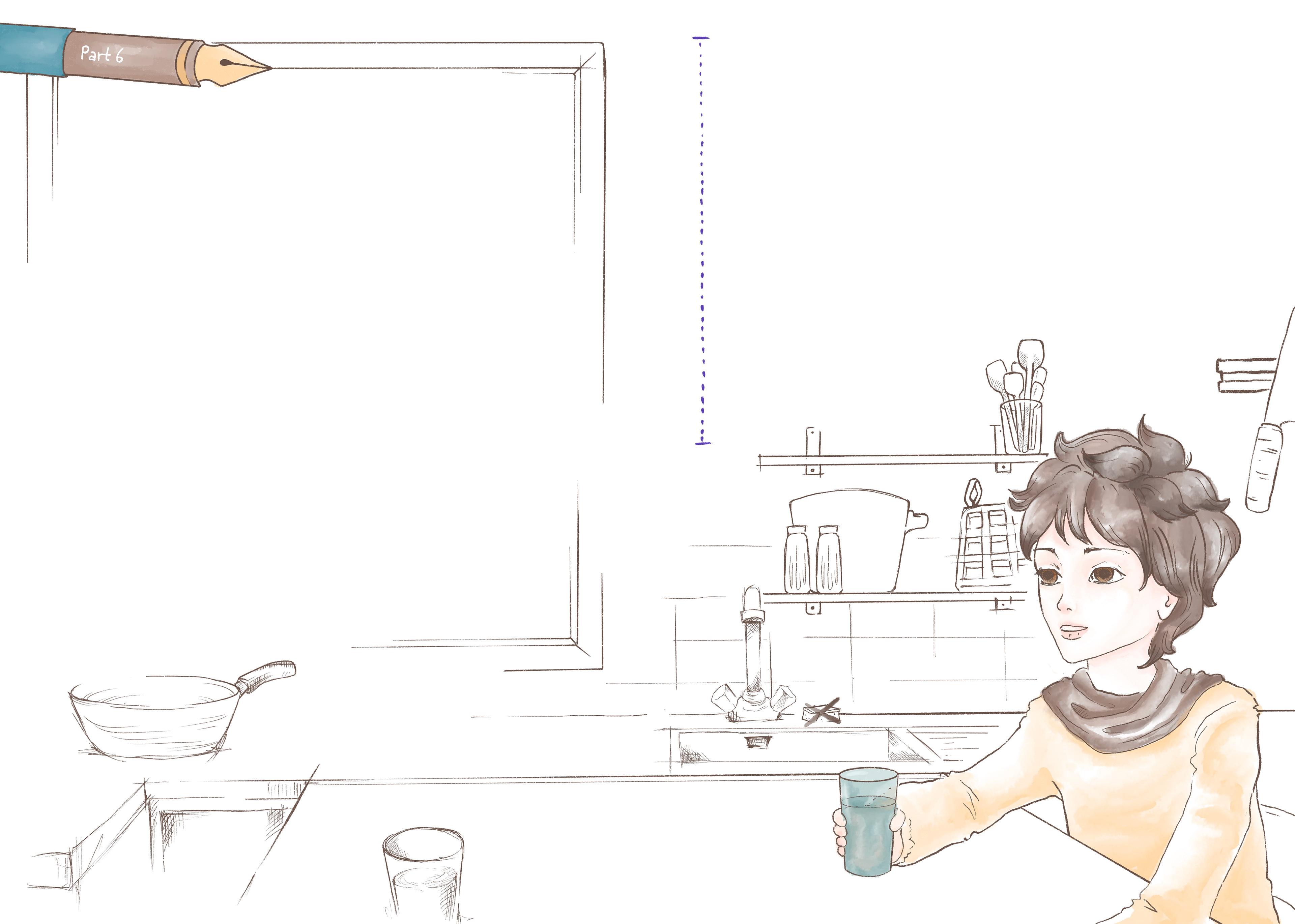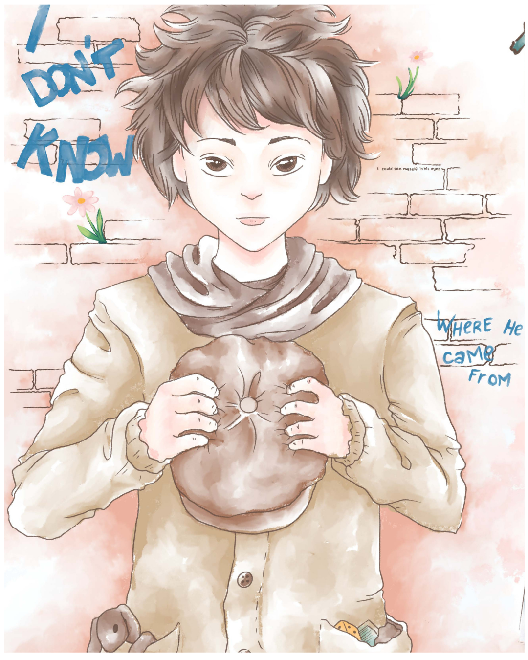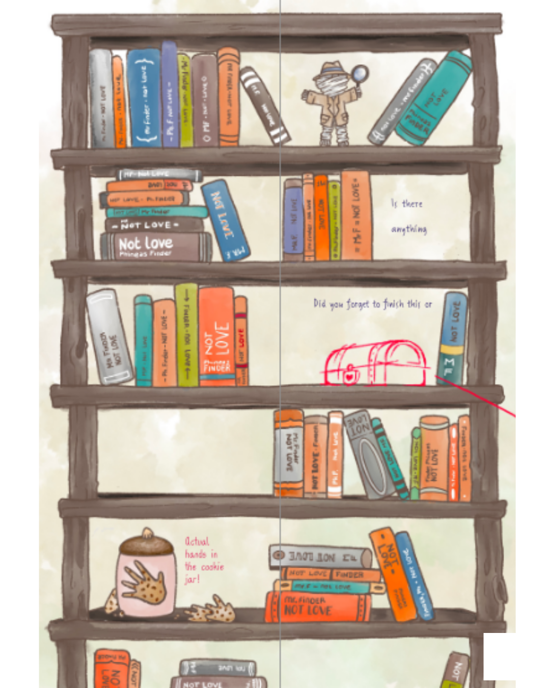 The story moves between sweetness, innocence, melancholy, and quiet searching. These qualities are intentionally mirrored in the visual language. Text and illustration are not treated as separate layers, but as interdependent elements that comment on and expand one another. Additional meta elements, such as visual side notes, references to images or text passages, and deliberately ambiguous “mistakes”, function like editorial annotations. They are meant as subtle prompts for reflection rather than explicit explanations.