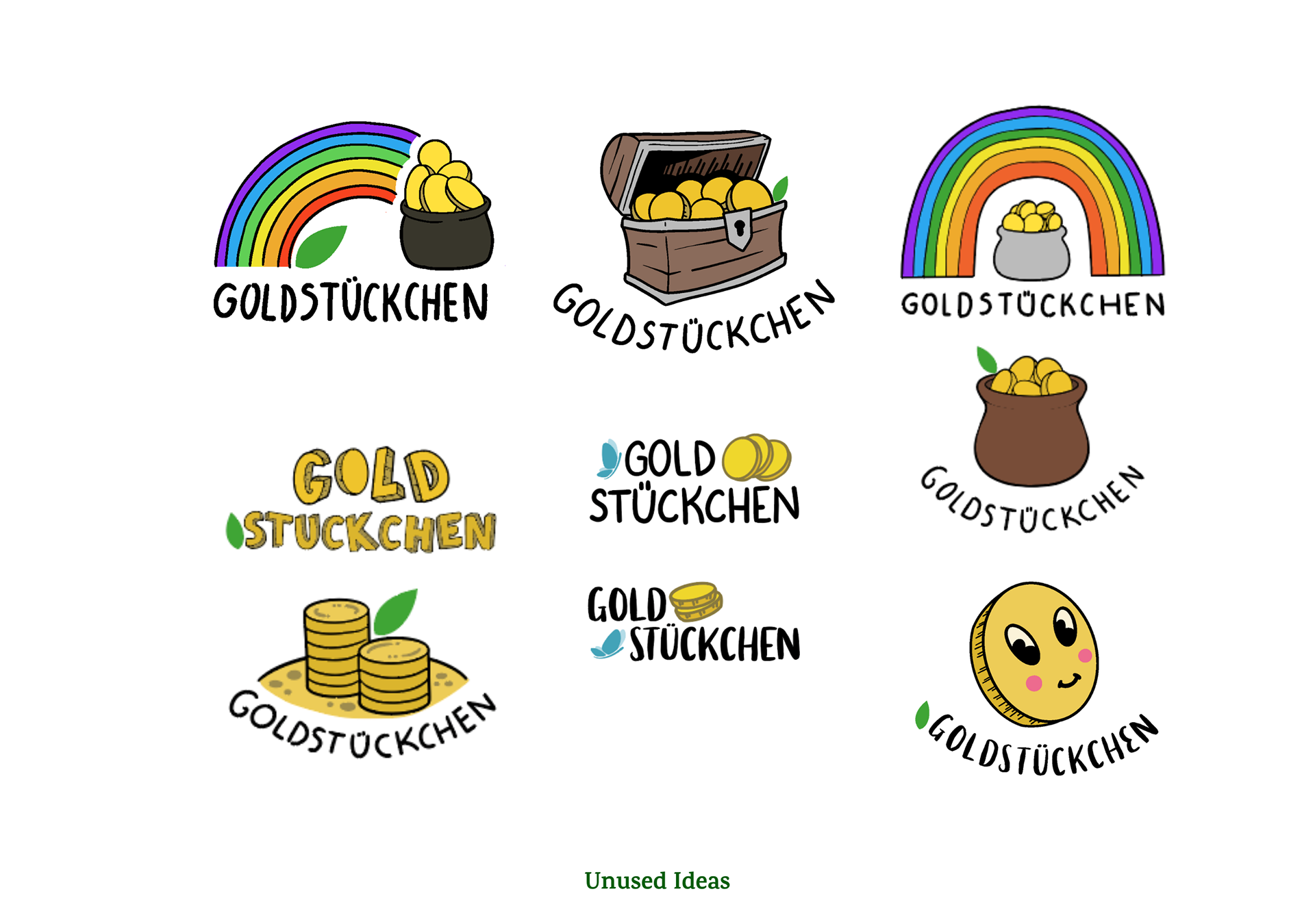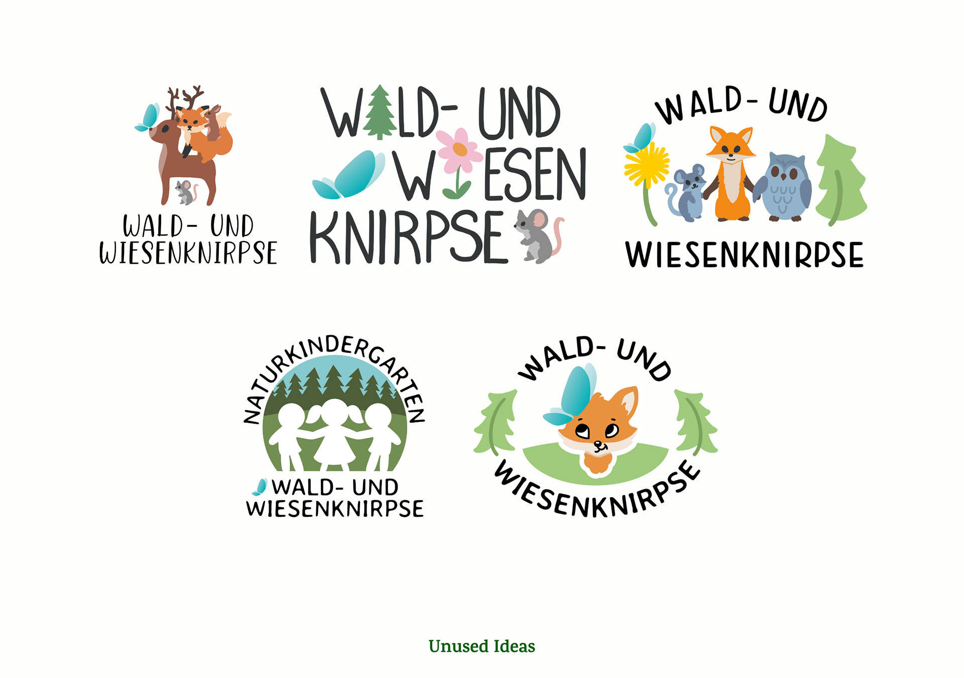 Starting from the client’s name proposals, I drafted initial concepts and refined them through regular collaboration, ensuring each logo is both playful and professional. "Wald-und Wiesenknirpse" features whimsical forest gnomes, "Edelsteinchen" showcases a cheerful child discovering gemstones, and "Goldstückchen" presents a treasure pot symbolizing each child's precious value, as well as captivating the Kita's location in the gold-city Pforzheim. The aim was for clear, child-friendly visuals that still hold up as branding in a nonprofit / educational context.