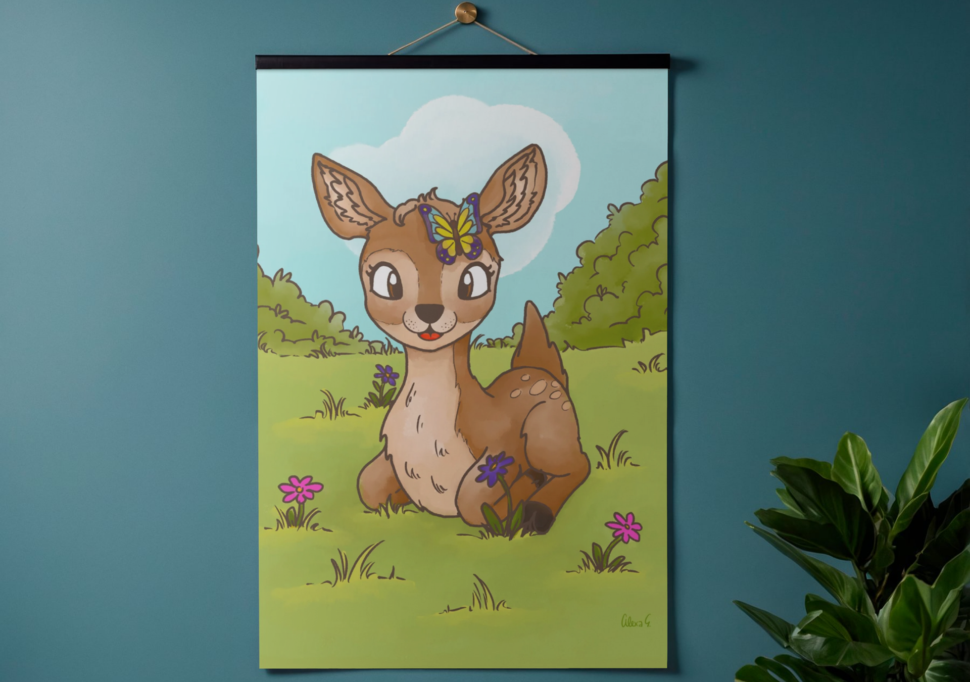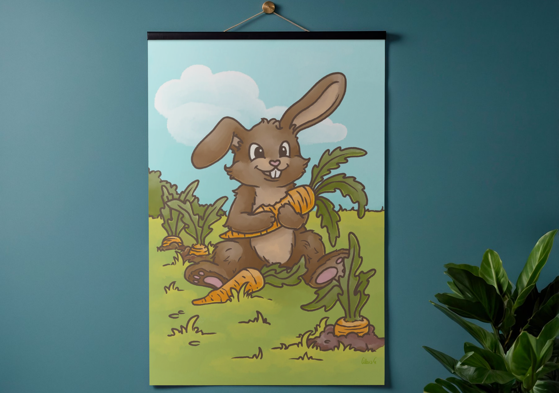 The result is a warm, child-friendly poster series that combines character illustration, gentle storytelling, and thoughtful color design. The collection is well suited for children’s rooms and playful interior spaces, offering flexibility in arrangement while maintaining a clear and recognizable visual identity across the entire series.