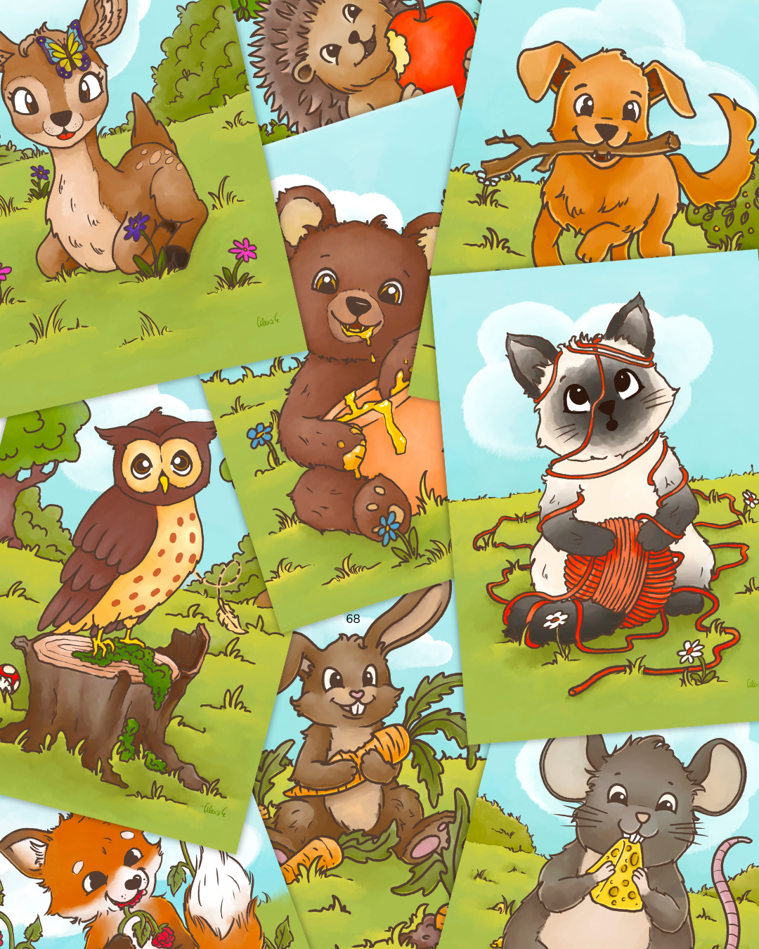 Creation of a children’s animal poster series consisting of nine individual illustrations