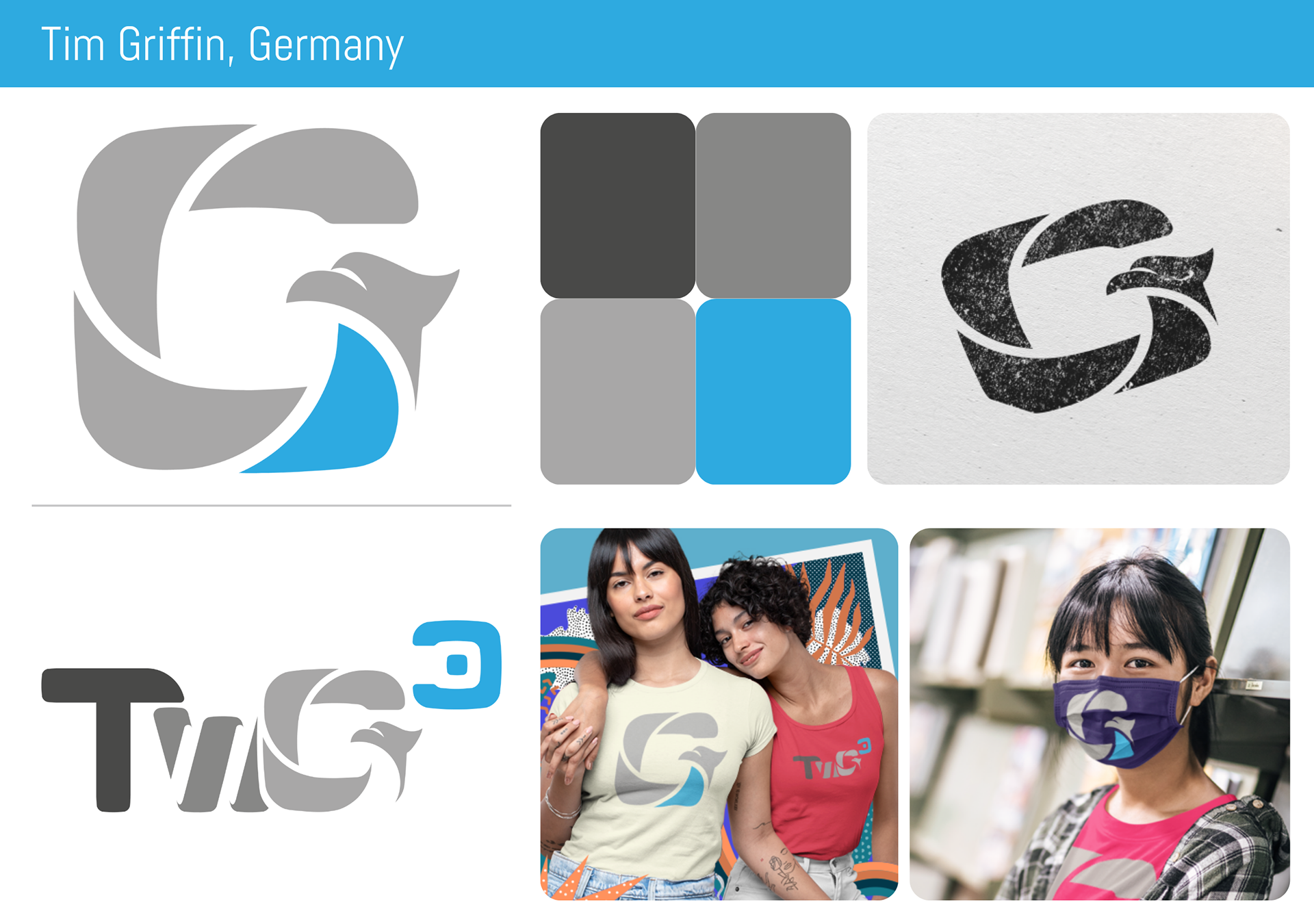 Logo-Design Tim Griffin – stilisiertes G-Symbol in Grau und Blau für Corporate Branding
