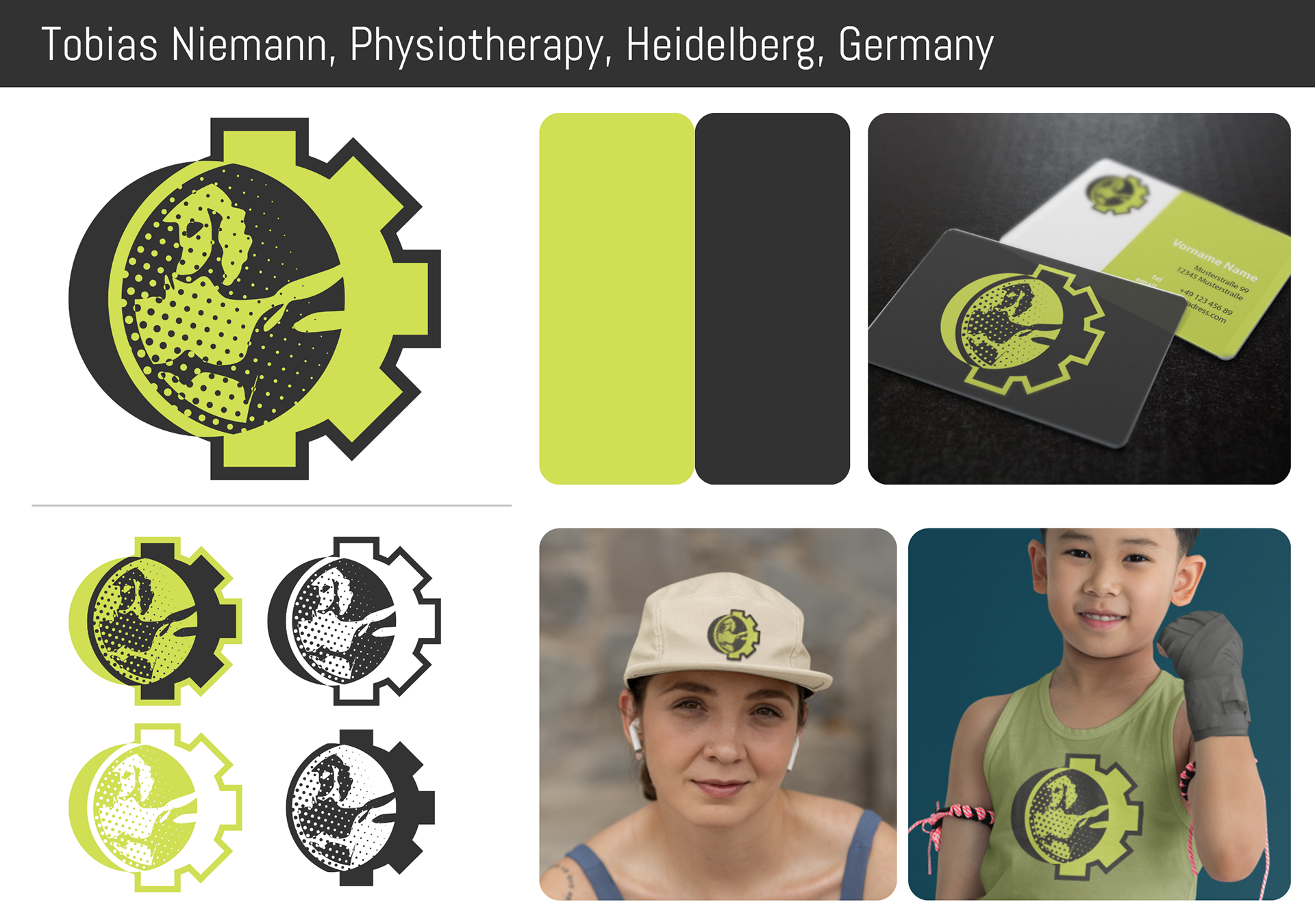 Logo-Design Tobias Niemann Physiotherapie Heidelberg – dynamisches Zahnrad- und Mensch-Symbol