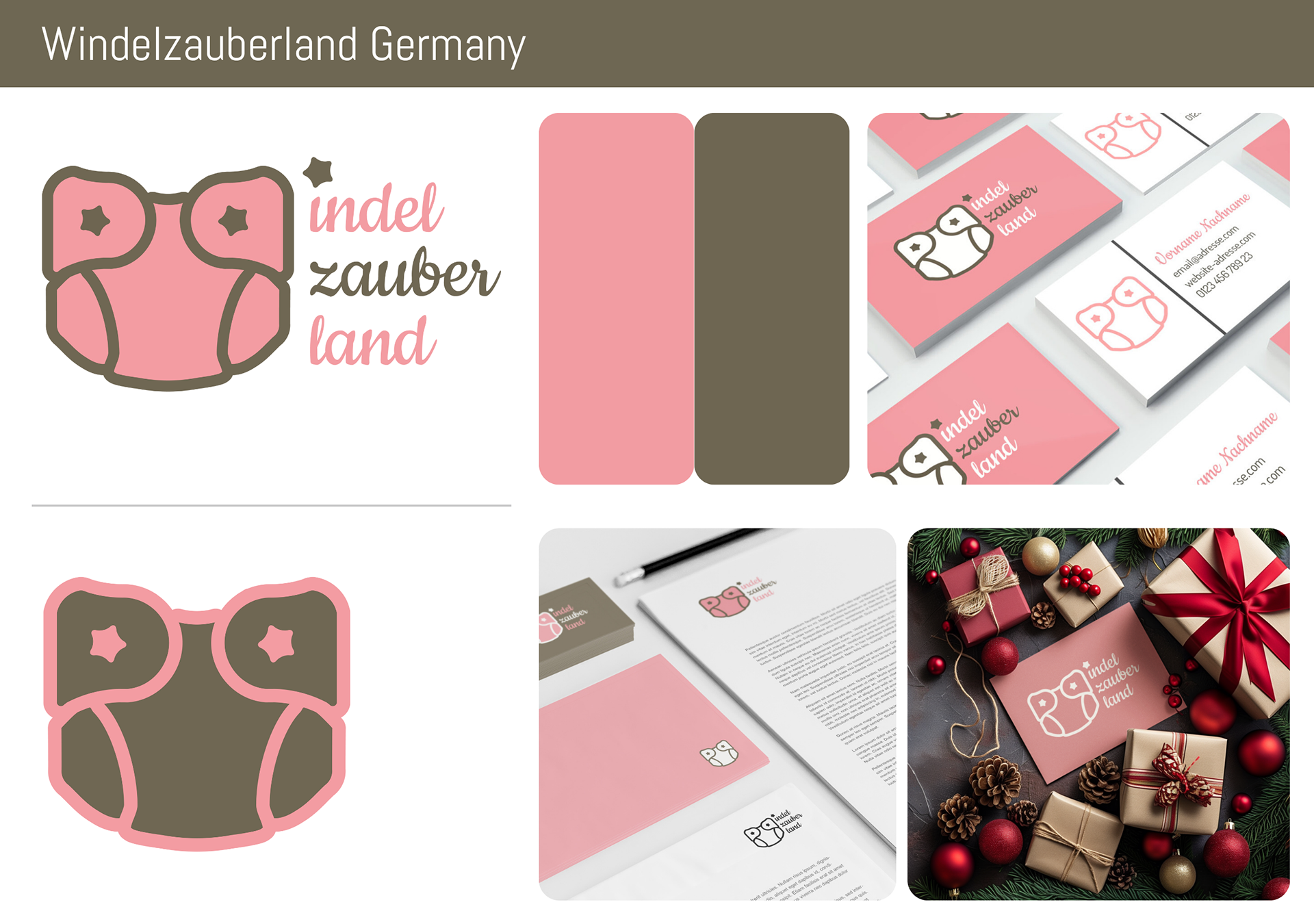 Logo-Design Windelzauberland – verspieltes Babymoden-Logo mit gezeichneter Windel in Rosa