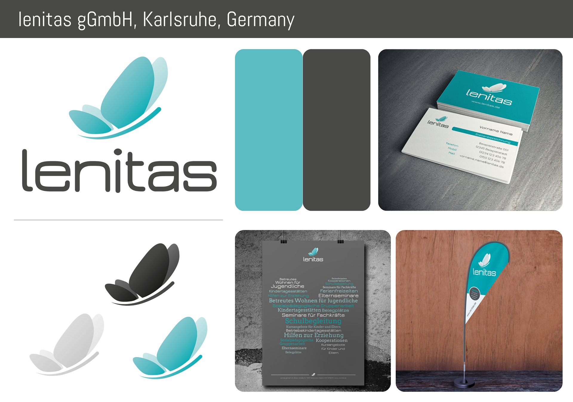Logo-Design Lenitas Karlsruhe – Schmetterling-Symbol für Kinder- und Jugendhilfe