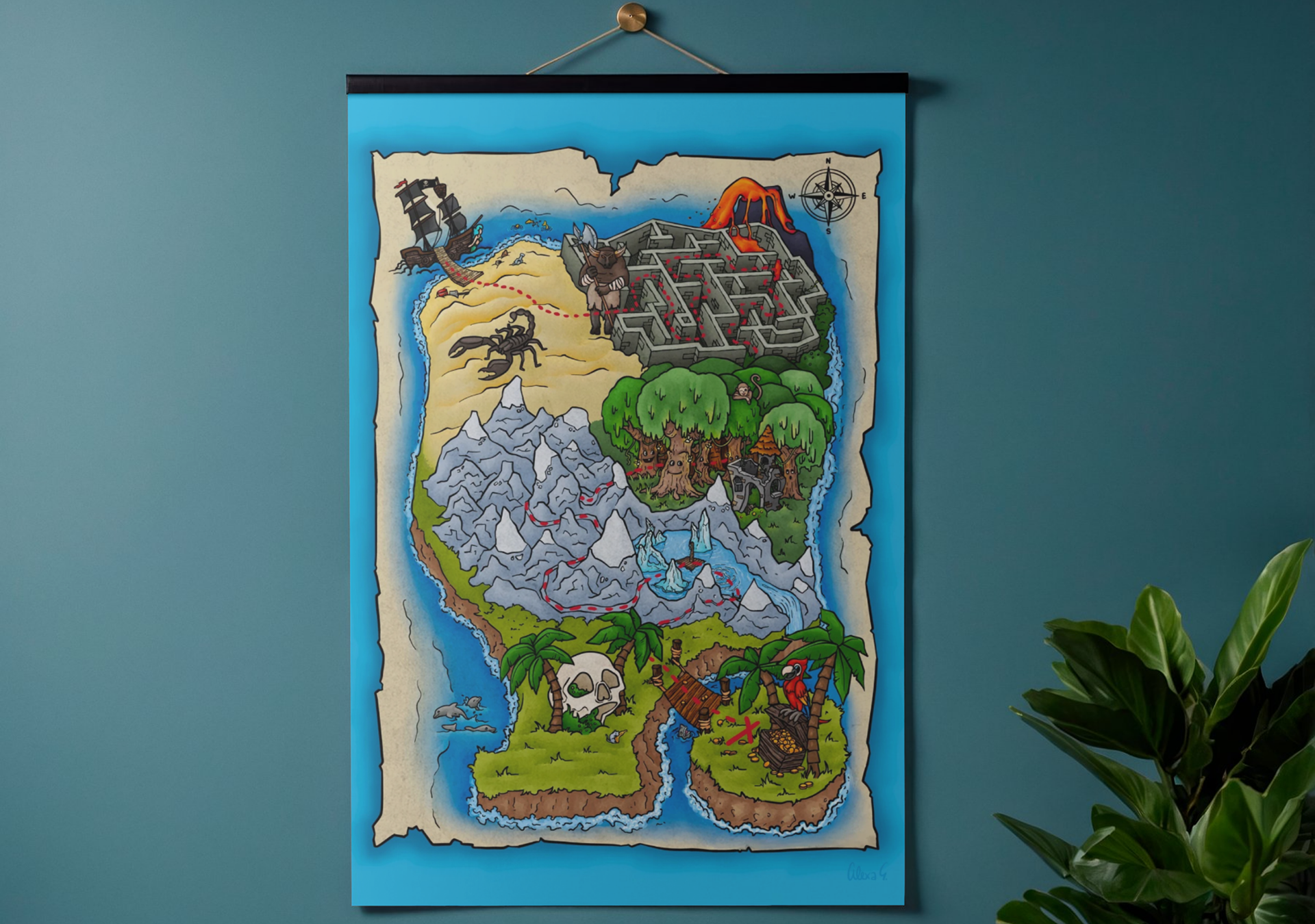 Each poster is designed to work on its own, but together they form a larger, connected pirate world. A lot of care went into developing and refining the color palette, making sure all three illustrations feel balanced and cohesive when displayed as a set.